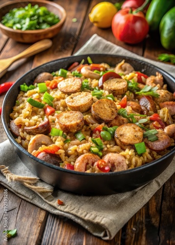 Hearty vegetable and shrimp stir-fry in a black skillet.