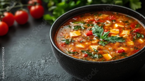 Hearty Vegetable Soup with Fresh Greens and Tomatoes. Generative AI