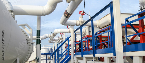 Heat exchangers in a refinery. Heated gasoline air cooler. The e