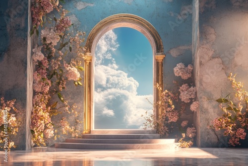 Heavenly Archway: A Dreamlike Gateway to Serenity. Digital Backdrop.