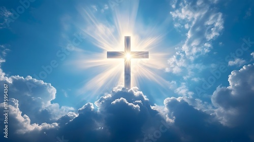 Heavenly Cross-Shaped Cloud Shining with Divine Light