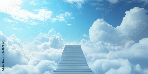 Heavenly Stairway Leading Up into the Sky with White Clouds and Blue Skies, Symbolizing Hope and Aspirations