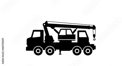 Heavy Crane Truck Lifting Car Black and White Construction Vehicle Silhouette