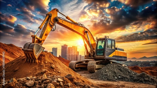 Heavy duty backhoe excavator working on a construction site digging earth and moving materials