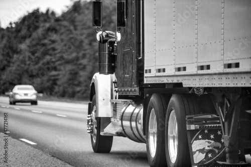 Heavy truck along a major US road.