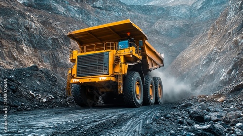 Heavy truck transporting minerals in an active mining site during daylight hours