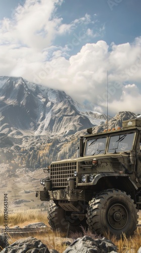 Heavy-duty Military Vehicle. Modern military transport truck concept