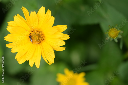 Heliopsis yellow flower on green bokeh background. flower background with space for text.