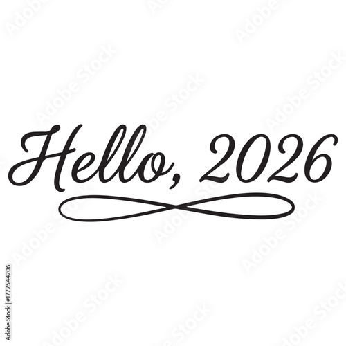 Hello, 2026 – Elegant Script Hand Lettering Vector