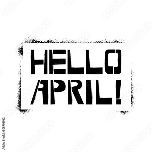 Hello April stencil lettering. Spray paint graffiti on white background. Design templates for greeting cards, overlays, posters