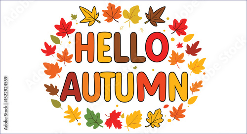 Hello Autumn Leaves Border Design For Seasonal Greetings Card