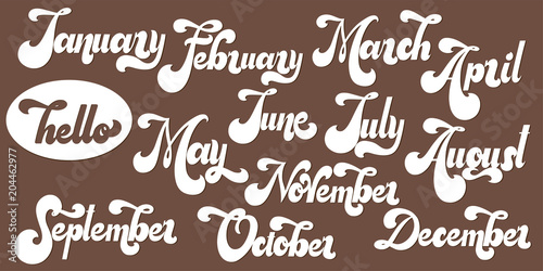 Hello Month lettering. Elements for invitations, posters, greeting cards. T-shirt design. Seasons Greetings. 70s typography retro style