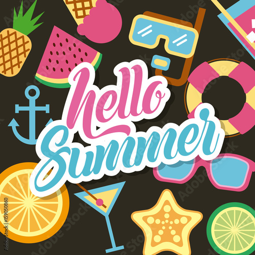 hello summer flat icon vector illustration design graphic