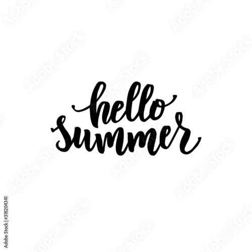 Hello summer hand lettering text as logotype, label, badge, icon, postcard, card, invitation, banner template. Special summer sale typography poster. Vector illustration.