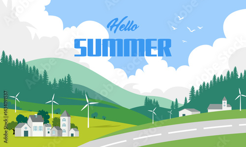 Hello summer natural concept design. Creative abstract shape background and plant colorful of summer season.