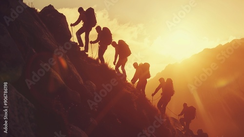 Help and improve concept silhouette people helping other hiker climbing rock and mountain.