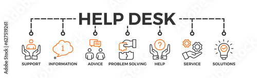 Help desk banner web icon vector illustration concept with icon of support, information, advice, problem solving, help, service and solutions