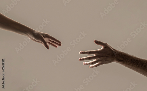 Helping hand outstretched, isolated arm, salvation. Two hands, helping arm of a friend, teamwork.Helping hand concept and international day of peace, support
