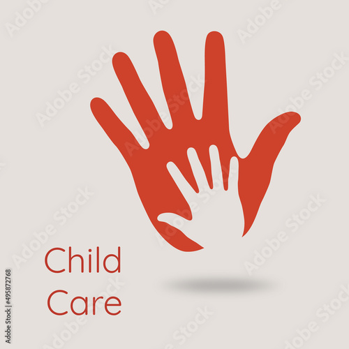 Helping hands. Support and care for children. Hands of adult and child. Vector illustration