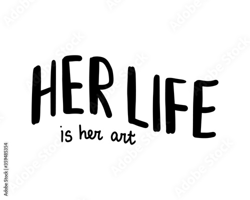 Her life is art hand drawn vector lettering black white contrast