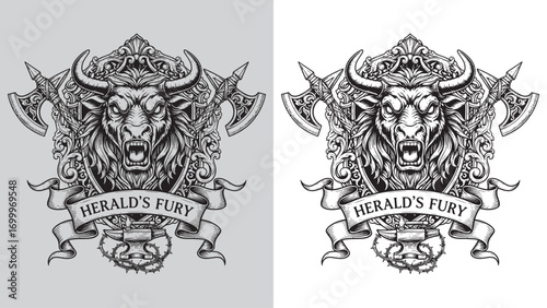 Herald's Fury Minotaur Head Crest with Anvil and Axes