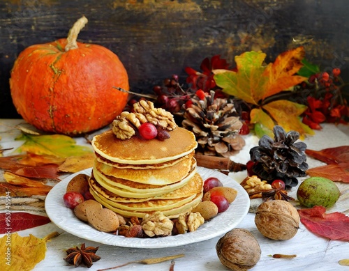 Herbstliche Pfannkuchen mit Walnüssen und Obst