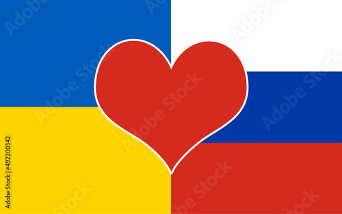 Herz auf Flaggen der Ukraine und Russland Illustration