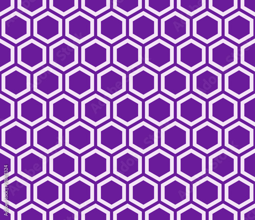 Hexagon background design. Purple color on matching background. Plain hexagon net with inner solid cells. Seamless pattern. Tileable vector illustration.