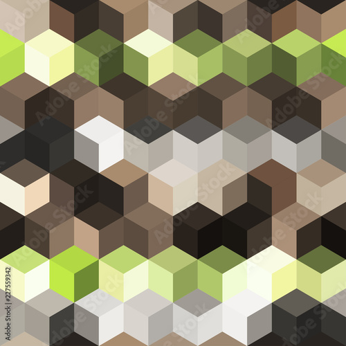 Hexagon grid seamless vector background. Stylized polygons bauhaus corners geometric design. Trendy colors hexagon cells pattern for game background. Honeycomb cube shapes mosaic.
