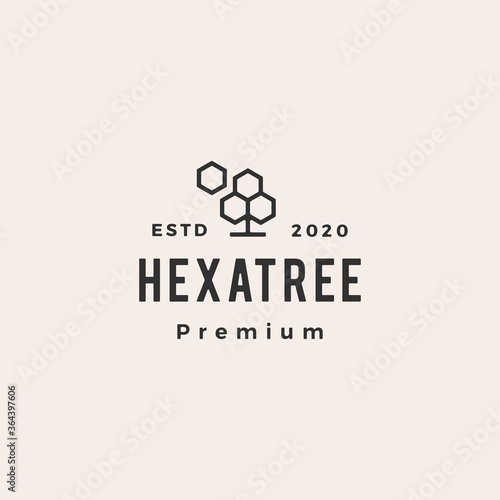 hexagon tree hipster vintage logo vector icon illustration