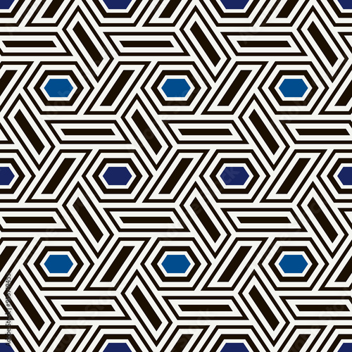 Hexagonal seamless pattern. Mosaic tiles. Geometrical wallpaper. Honeycomb print. Ethnic ornament illustration. Wicker background. Flooring image. Geometric backdrop. Ethnical vector
