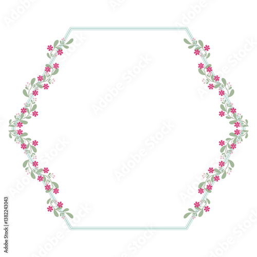 Hexagonal Wreath Border Frame Decorated With Pink And Green Floral