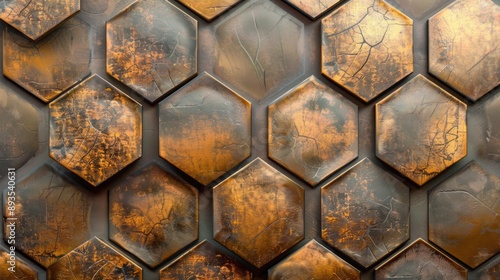 hexagons shape background made from bronze or copper