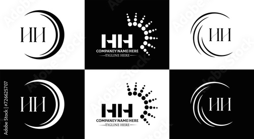 HH logo. H H design. WhitE HH letter. HH, H H letter logo SET design. Initial letter HH linked circle uppercase monogram logo. H H letter logo SET vector design. HH letter logo design
