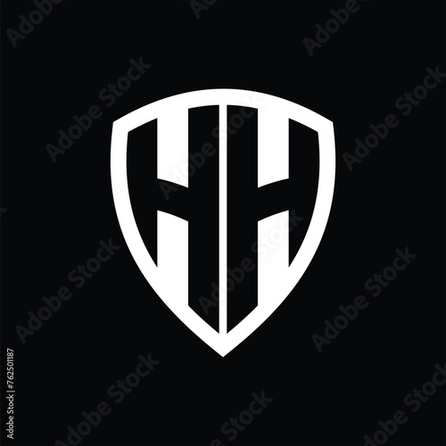 HH monogram logo with bold letters shield shape with black and white color design