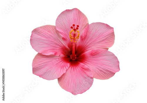 Hibiscus Bloom A pink tropical flower against a stark black background