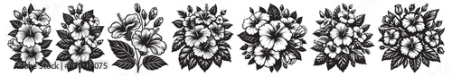 Hibiscus vector art, Hibiscus silhouette, Hibiscus illustration, Hibiscus black and white vector, black and white flower, Hibiscus flower silhouette,