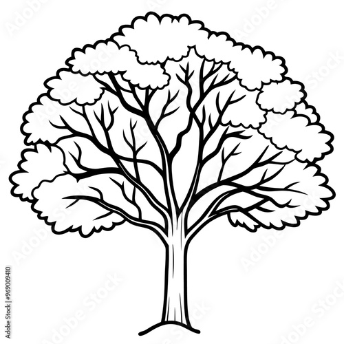 hickory tree outline coloring book page line art drawing