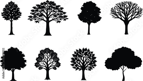 hickory tree vector art icon, hickory tree silhouette vector.