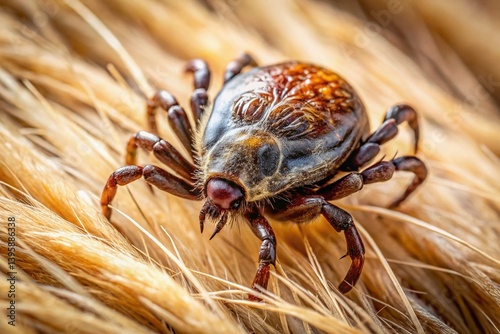 Hidden Danger: Ornate Dog Tick in Dog Fur - Close-up Stock Photo