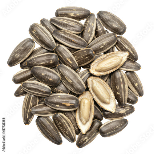 High Angle Close Up View of Black and White Sunflower Seeds on Transparent Background Detailed Macro Photography of Seeds Food Texture