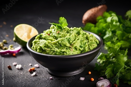 High angle tasty guacamole in bowl copy space concept Generate AI