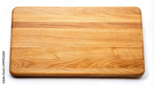 High angle view of a natural wooden cutting board on white background