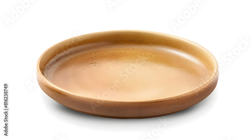 High angle view of empty brown spotted shallow ceramic plate isolated on white background with clipping path : Generative AI
