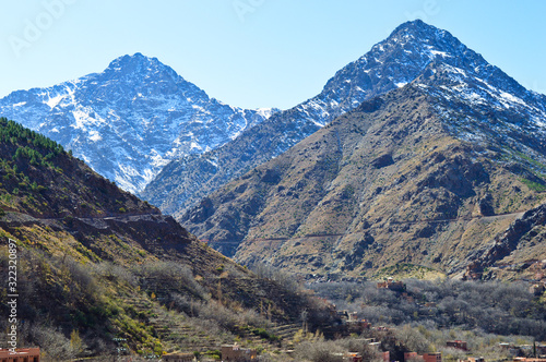 High atlas mountains including mount ain Jabal Toubkal from Imlil and the valley around