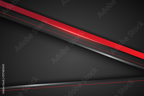 High contrast dark grey and red stripes with shadows and lights on gradient background. Abstract grunge tech graphic banner design. Vector Illustration EPS10