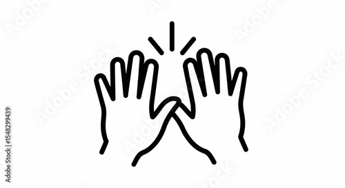 High Five Outline Icon with Fingers and Palm Illustration