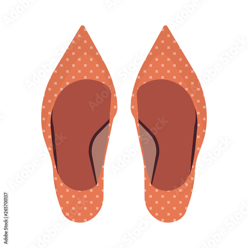 High heel brown beautiful foot shoes wear. Feminine trendy fashion accessories flat top view. Love sexy long model vector icon above
