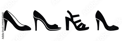 High heels icon set, high heel shoe silhouette, female high heels shoes vector icon isolated on white background, women high heels, high heel icon vector.