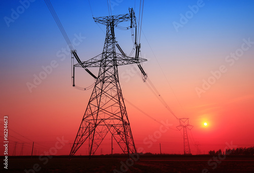 High piezoelectric towers, in the setting sun
